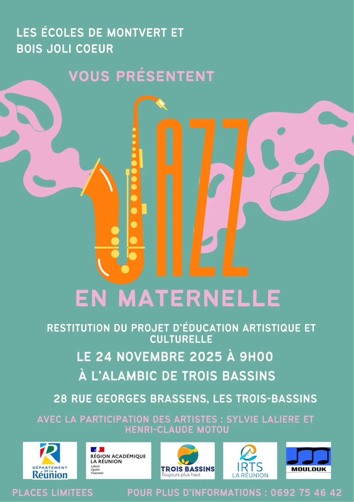 Dans le cadre du CLEA , les écoles de Montvert et Bois Joli Coeur vous présente Jazz en maternelle, un projet d’éducation artistique et culturelle avec la participation des artistes suivants : Sylvie Laliere et Henri-Claude Motou.
