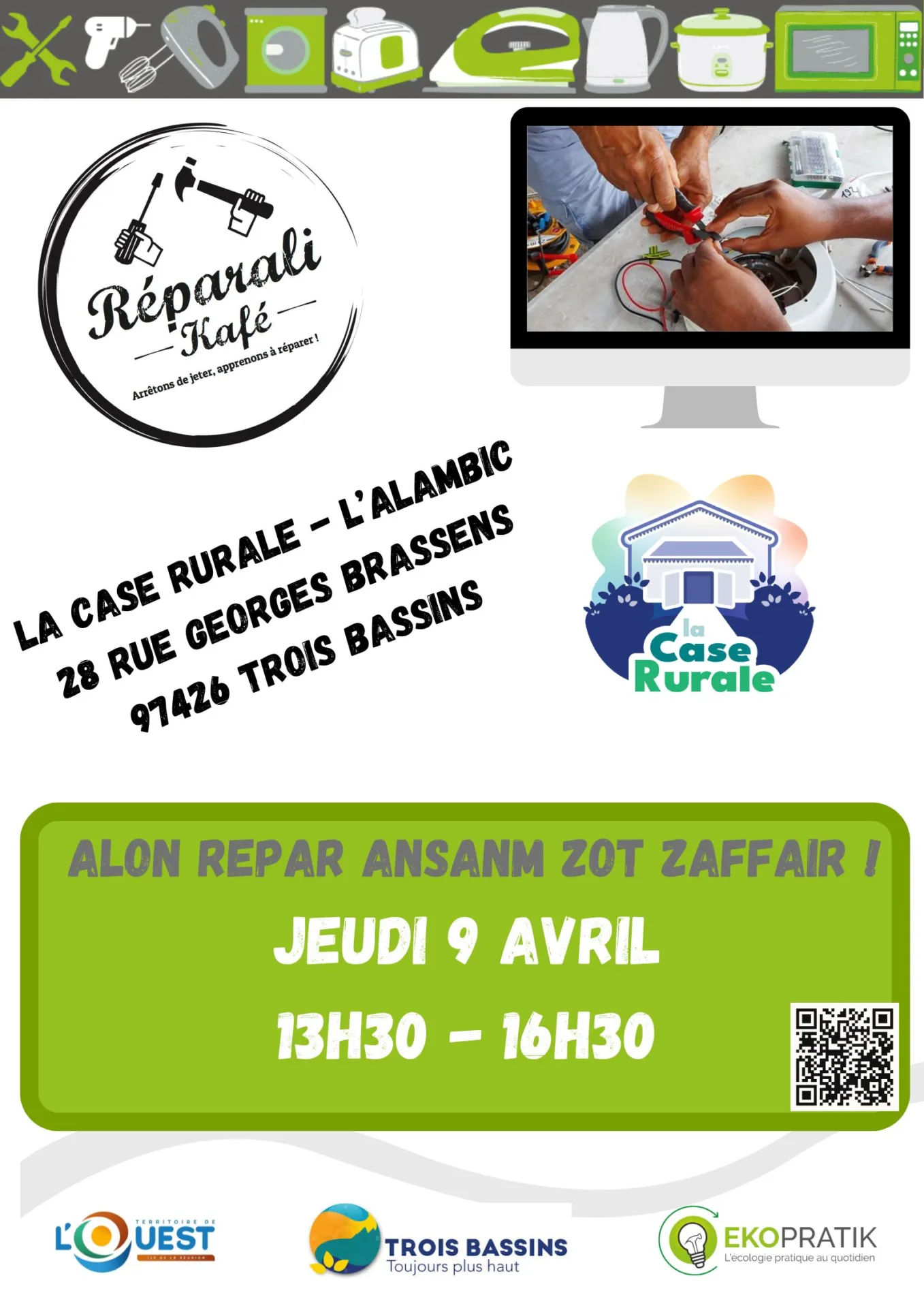 Viens apprendre à réparer ton petit électroménager en compagnie de l’équipe d’Ekopratik.
